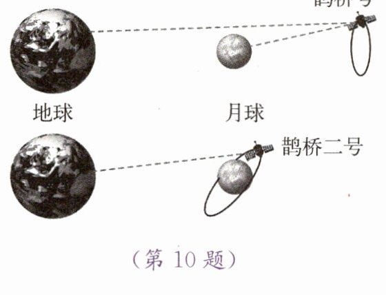 10. 我国于 2018 年和 2024 年先后发射了鹊桥号和鹊桥二号中继星,架起了地球与月球背面通信的“天桥”。如图所示,相比于鹊桥号,鹊桥二号距离月球更近,采用了反射率更高的镀金钼丝天线。下列说法中错误的是 (