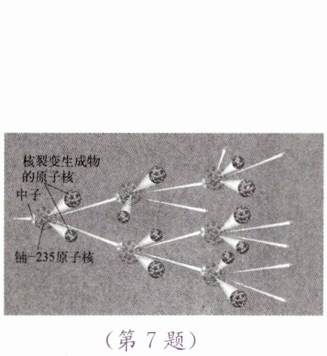 7. 实验表明,铀核发生裂变时,除了释放能量外,每个铀核同时还会放出2~3个中子,这些中子又能使其他铀核发生