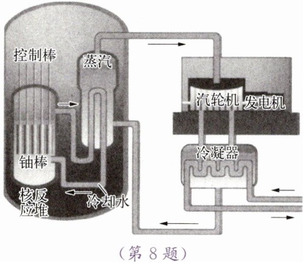 8. 如图所示,核反应堆工作时,将铀核裂变释放的