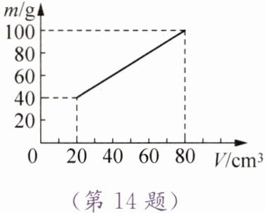 14. (扬州)在测量液体密度的实验中,小明利用天平和量杯测量出液体和量杯的总质量$m$以及液体的体积$V$,得到了几组数据并绘制出如图所示的$m-V$图像。下列说法中正确的是 (