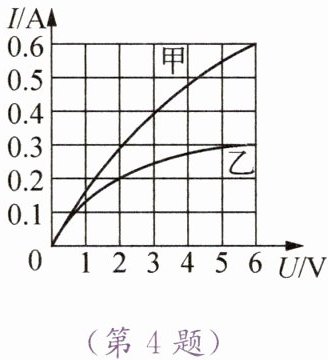 4. (苏州)额定电压均为$6\ V$的甲、乙两灯,其$I-U$图线如图所示。下列说法中正确的是 (