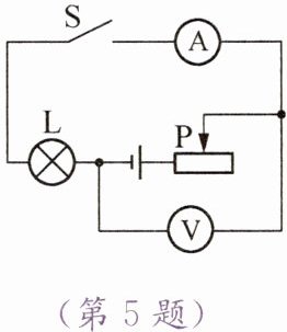 解:由电路图可知,灯泡L与滑动变阻器串联,电压表测灯泡L两端的电压,电流表测电路中的电流。