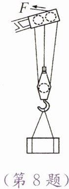 8. (南京)建筑工地上,起重机吊臂上的滑轮组如图所示。在匀速起吊重$4.2×10^3\ N$的物体时,物体$5\ s$内上升了$6\ m$,此过程中有用功为