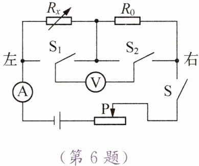 D.$S_1$向右闭合、$S_2$向左闭合,调节$R_x$使电流表示数减半后,其阻值一定大于原来的$2$倍