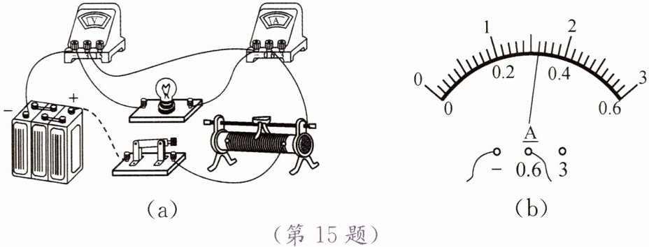 (1) 图(a)是用伏安法测$R_1$阻值的实物电路,电源电压恒为$3\ V$,滑动变阻器最大阻值为$10\ \Omega$。