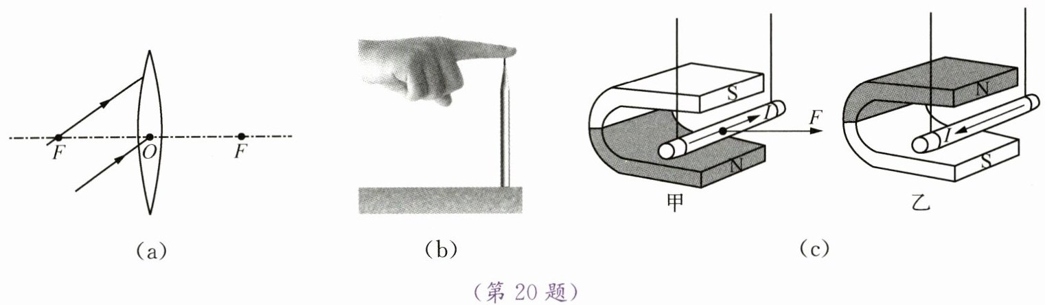 (2) 如图(b)所示,在水平桌面上用手指压铅笔尖,铅笔在竖直位置处于静止状态。在图中画出铅笔所受弹力的示意图。