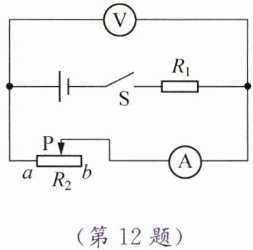 $a$端:$R_{2}=0$,电流$I_{a}=\frac{U}{R_{1}}=\frac{12\, V}{20\,\Omega}=0.6\, A$,电压表示数$U_{a}=0\, V$,$R_{1}$功率$P_{1a}=I_{a}^{2}R_{1}=7.2\, W$,总功率$P_{ 总a}=UI_{a}=7.2\, W$。