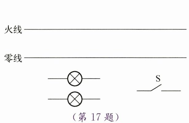 17. 某家庭用的壁灯上有两盏白炽灯,要求用一个开关控制其通断,请在图中画出电路图。