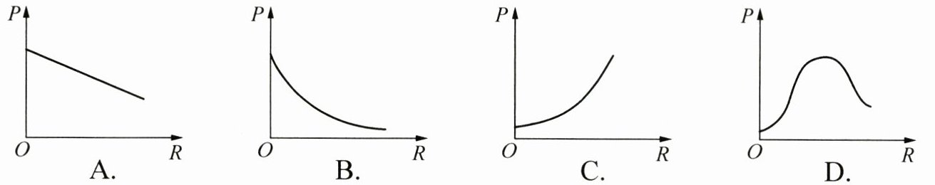 (4) 下列描述灯泡电功率$P$随滑动变阻器阻值$R$变化情况的图像中,正确的是