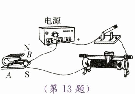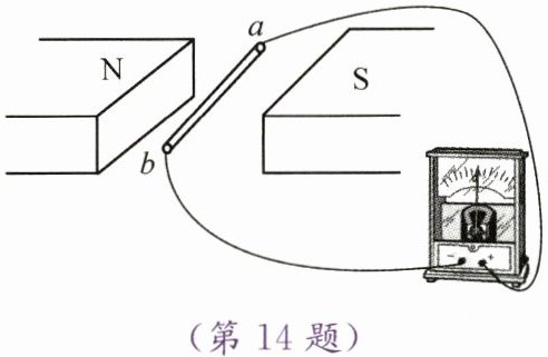 14. 如图所示,一对磁极水平放置,将导体$ab$放置在磁场中,$ab$与灵敏电流计相连,按下列方法操作能产生感应电流的是 (