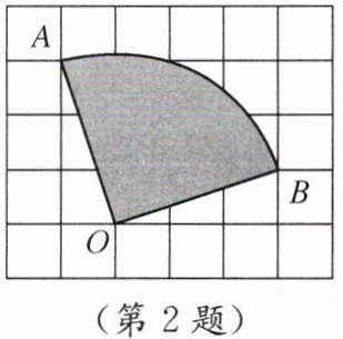 2. 如图,在 $5 × 6$ 的长方形网格飞镖游戏板上,扇形 $OAB$ 的圆心及弧的两端均为格点.假设飞镖击中每一块小正方形是等可能的(击中扇形的边界或没有击中游戏板,则重投$1$ 次),任意投掷飞镖 $1$ 次,飞镖击中扇形 $OAB$(阴影部分)的概率是(
