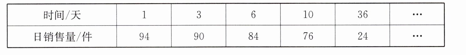 答案:解: (1)设时间为t,日销售量为m,则m=-2t + 96