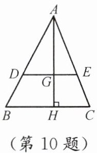 10. 如图,在$\triangle ABC$中,$DE // BC$,$AH \perp BC$,垂足为$H$,$AH$交$DE$于点$G$.若$DE = 10$,$BC = 15$,$GH = 6$,则$AH =$