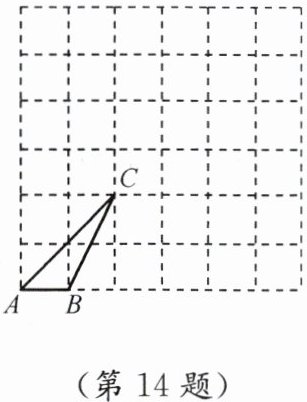 14. (6 分)如图,已知网格中的每个小正方形的边长都是 1 个单位长度. 请你以点$C$为位似中心,将$\triangle ABC$放大为原来的 2 倍,在图中画出放大后的三角形.
