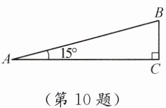 10. 如图,在 Rt△ABC 中,∠C = 90°,BC = 10 m,∠A = 15°,用计算器算得 AB 的长约