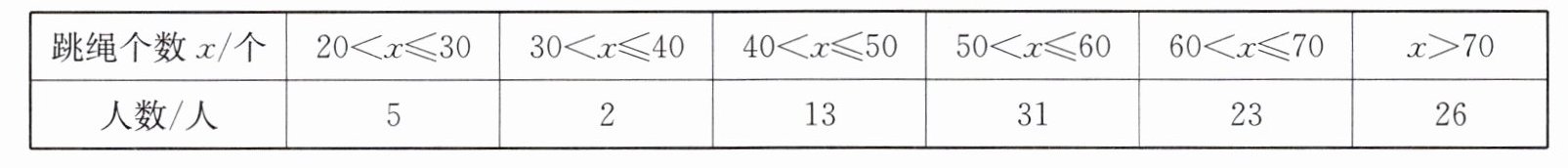 4. 有100名学生进行20s跳绳测试,测试成绩统计如下表: