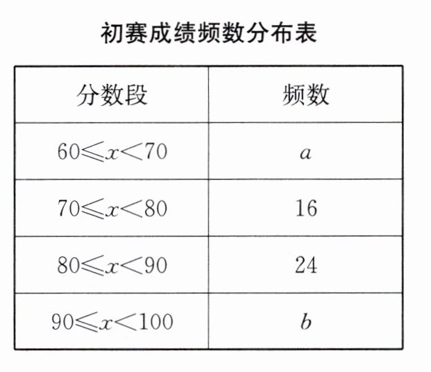 (3)全校共有600名学生参加初赛,估计该校成绩在$90\leqslant x<100$范围内的学生有多少人;