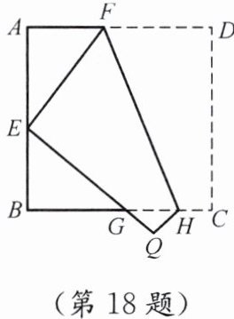 18. 如图,将边长为6 cm的正方形纸片ABCD折叠,使点D落在边AB的中点E处,折痕为FH,点C落在点Q处,EQ与BC相交于点G,则△EBG的周长是