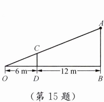 15. 如图,小明用长为3 m的竹竿CD做测量工具,测量旗杆AB的高度,移动竹竿,使竹竿与旗杆之间的距离DB=12 m,则旗杆AB的高为