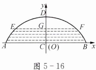如图 5 - 16,拱形桥桥下水面宽度 $AB$ 为 $20 m$,拱高 $CD$ 为 $4 m$,水面上升 $3 m$ 至 $EF$ 时,求水面宽度 $EF$.