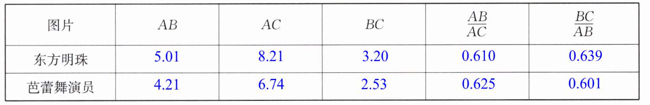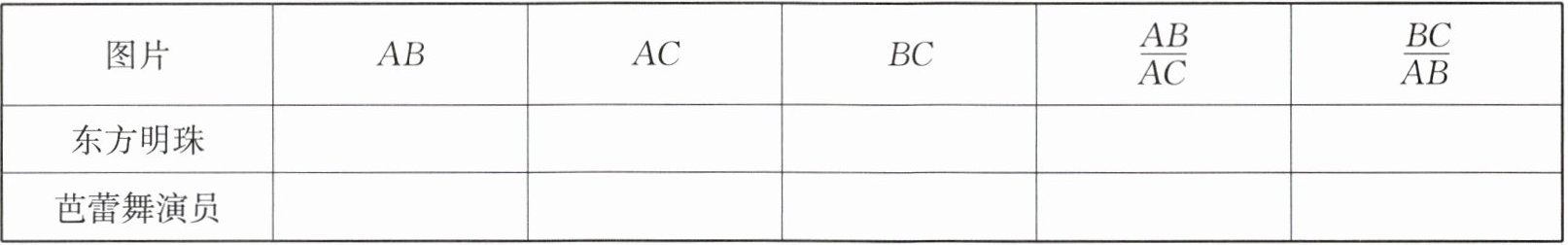 解:发现$\frac {AB}{AC}$与$\frac {BC}{AB}$的值都约为0.62。