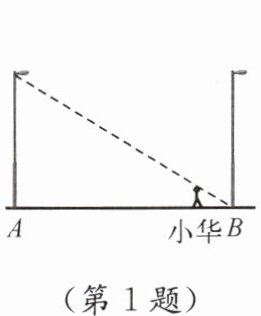 1. 如图,两盏高度相同的路灯$A$、$B$底部之间的距离是$30\ m$.某天晚上,当小华走到距路灯$B$的底部$5\ m$处时,发现自己的影子顶部正好接触路灯$B$的底部.已知小华的身高为$1.5\ m$,那么路灯$B$的高为