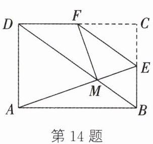 14. (2025·宜宾)如图,在矩形 ABCD 中,点 E,F 分别在边 BC,CD 上,且 $ EF // BD $,把$ △ECF $沿 EF 翻折,点 C 恰好落在矩形的对角线 BD 上的点 M 处。若 A,M,E 三点共线,则$ \frac{AD}{DC} $的值为