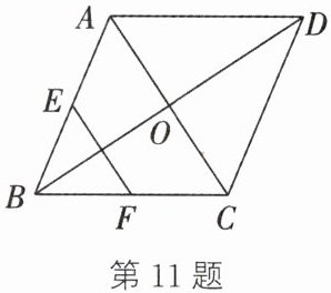 11. (2025·青海)如图,在菱形 ABCD 中,$ BD = 6 $,E,F 分别为 AB,BC 的中点,且 $ EF = 2 $,则菱形 ABCD 的面积为