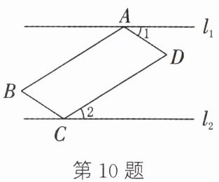 10. 如图,▱ABCD 的顶点 A,C 分别在直线 $ l_{1} $,$ l_{2} $ 上,$ l_{1} // l_{2} $。若 $ ∠1 = 33^{\circ} $,$ ∠B = 65^{\circ} $,则$ ∠2 = $