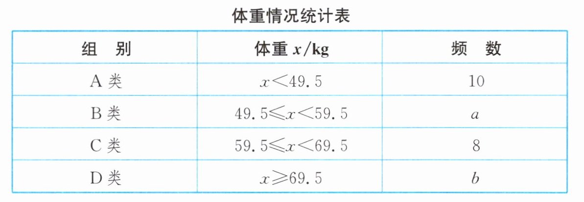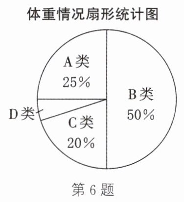 6. (2025·连云港)为了解八年级学生的体重情况,某校随机抽取了八年级部分学生进行测量,收集并整理数据后,绘制了如下尚不完整的统计图表.