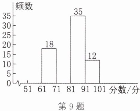 9. (新情境·现实生活)为培养学生学习数学的兴趣,激发学生学习数学的潜能,某校组织了一次面向八年级学生的数学知识竞赛,有2000名学生参加书面测试,阅卷后,学校随机抽取了100份答卷进行分析统计,发现测试结果(x分)的最低分为51分,最高分为满分100分,且分数都为整数,并绘制了如下尚不完整的统计图表,请根据图表提供的信息,解答下列问题: