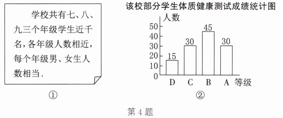 4. (新情境·现实生活)某校将学生体质健康测试成绩分为A,B,C,D四个等级,依次记为4分、3分、2分、1分.为了解学生整体体质健康状况,拟抽样进行统计分析.