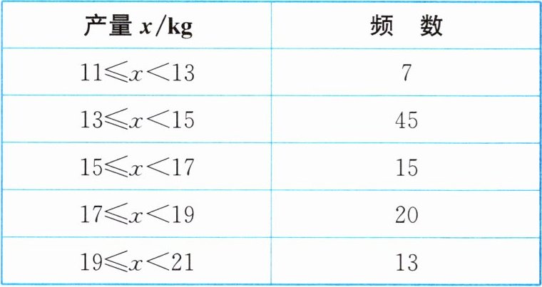 ∴估计甲种葡萄树每株产量不低于19kg的株数为65