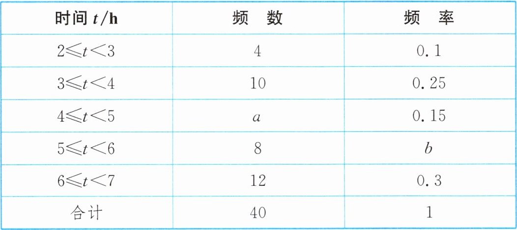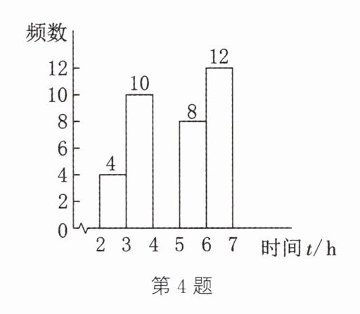 4. 某中学为了解学生每周在校的体育锻炼时间,在本校随机抽取了若干名学生进行调查,并依据调查结果绘制了如下不完整的统计表和如图所示不完整的统计图.