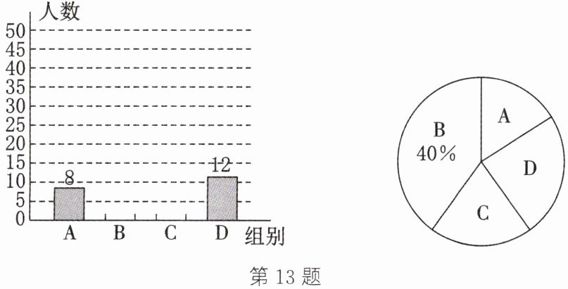 答案:13. (1)如图所示 解析:根据题意,得m = 50×40% = 20,