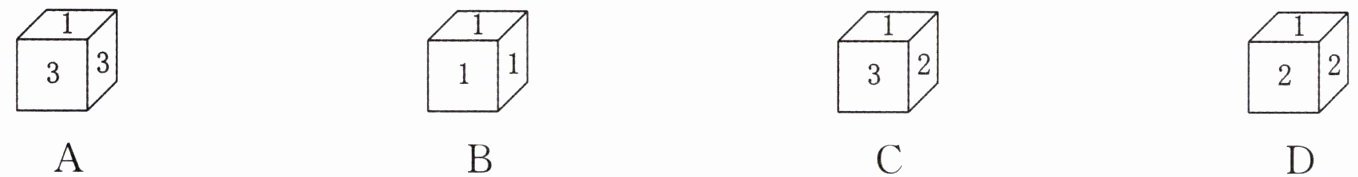 选项A中数字3有2个面,不符合要求,所以该木块不可能是A。