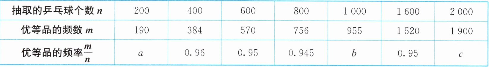 ∴从这批乒乓球中任意抽取的一个乒乓球是优等品的概率的估计值为0.95