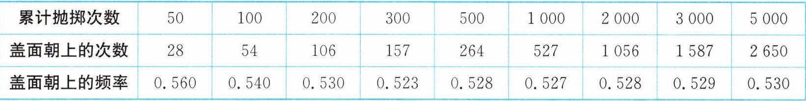 3. (2024·扬州)数学兴趣小组做抛掷一枚瓶盖的试验后,整理的试验数据如下表(精确到 0.001):