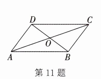 11. 如图,在$□ ABCD$中,对角线$AC$,$BD$相交于点$O$,$AB = 5$,$BC = 3$,$BD = 4$,则$OC$的长为