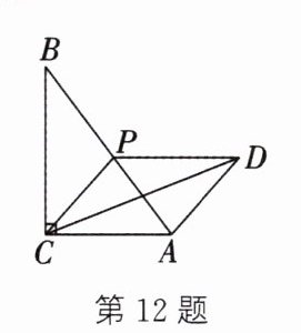 12. 如图,在$\mathrm{Rt}\triangle ACB$中,$\angle ACB = 90^{\circ}$,$AC = 3$,$BC = 4$,点$P$在边$AB$上,四边形$ACPD$是平行四边形,则$CD$长的最小值是