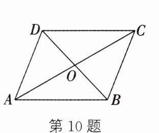 10. 如图,在$□ ABCD$中,对角线$AC$,$BD$相交于点$O$,$AO = 3$,$AB = 4$,$\angle BAC = 30^{\circ}$,则$□ ABCD$的面积为