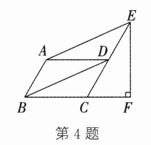 4. 如图,在 $□ ABCD$ 中,$\angle BAD = 120^{\circ}$,连接 $BD$,过点 $A$ 作 $AE // BD$,交 $CD$ 的延长线于点 $E$,过点 $E$ 作 $EF ⊥ BC$,交 $BC$ 的延长线于点 $F$,且 $CF = 1$,则 $AB$ 的长为