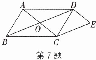 7.(2024·辽宁)如图,$□ ABCD$ 的对角线 $AC$,$BD$ 相交于点 $O$,$DE // AC$,$CE // BD$,$DE$,$CE$ 相交于点 $E$。若 $AC = 3$,$BD = 5$,则四边形 $OCED$ 的周长为(