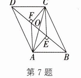 7. 如图,在四边形 $ABCD$ 中,$AB = CD$,对角线 $AC$,$BD$ 相交于点 $O$,$AE⊥ BD$ 于点 $E$,$CF⊥ BD$ 于点 $F$,连接 $AF$,$CE$.若 $DE = BF$,则有下列结论:① $CF = AE$;② $OE = OF$;③ 图中共有四对全等三角形;④ 四边形 $ABCD$ 是平行四边形.其中,正确的是