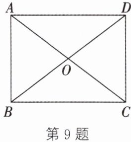 答案:9.(1)选择不唯一,如选择①$\because$AD//BC,AB//CD,$\therefore$四边形ABCD是平行四边形.$\because \angle ABC = 90°,\therefore$四边形ABCD是矩形 (2)$\because \angle ABC = 90°,AB = 3,AC = 5,\therefore BC = \sqrt{AC^2 - AB^2} = \sqrt{5^2 - 3^2} = 4.\because$四边形ABCD是矩形,$\therefore$四边形ABCD的面积$= AB· BC = 3×4 = 12$