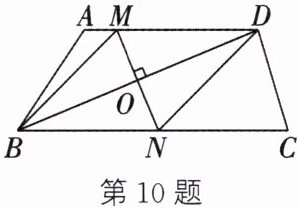 10. (2025·扬州改编)如图,在四边形$ABCD$中,$AD// BC$,对角线$BD$的垂直平分线分别交$AD$,$BC$,$BD$于点$M$,$N$,$O$,连接$BM$,$DN$.