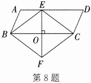 8. 如图,在$□ ABCD$中,$BC$的垂直平分线$EO$交$AD$于点$E$,交$BC$于点$O$,连接$BE$,$CE$,过点$C$作$CF// BE$,交$EO$的延长线于点$F$,连接$BF$.若$AD = 8$,$CE = 5$,则四边形$BFCE$的面积为