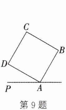 9. (分类讨论思想)如图,过直线 $ AP $ 上一点 $ A $ 作正方形 $ ABCD $,$ \angle PAD = 30^{\circ} $,若以点 $ B $ 为圆心,$ AB $ 的长为半径作弧,与 $ AP $ 交于点 $ A $,$ M $,分别以点 $ A $,$ M $ 为圆心,$ AM $ 的长为半径作弧,两弧交于点 $ E $,连接 $ ED $,则 $ \angle ADE $ 的度数为