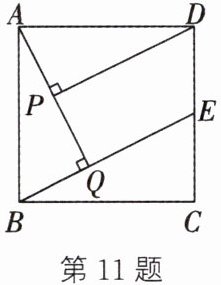 11. 如图,在正方形 $ ABCD $ 中,点 $ E $ 在边 $ CD $ 上,$ AQ ⊥ BE $ 于点 $ Q $,$ DP ⊥ AQ $ 于点 $ P $.