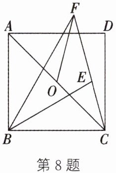 8. 如图,在正方形 $ ABCD $ 中,$ O $ 为对角线 $ AC $ 的中点,$ E $ 为正方形内一点,连接 $ BE $,$ BE = BA $,连接 $ CE $ 并延长,与 $ \angle ABE $ 的平分线交于点 $ F $,连接 $ OF $. 若 $ AB = 1 $,则 $ OF $ 的长为